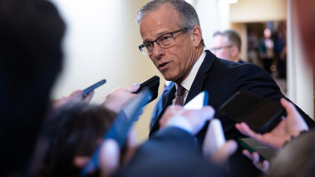 A large contingent of House Republicans — encompassing hard-liners, Budget Committee members, panel chairs and party leaders — piled into Speaker Mike Johnson’s office...